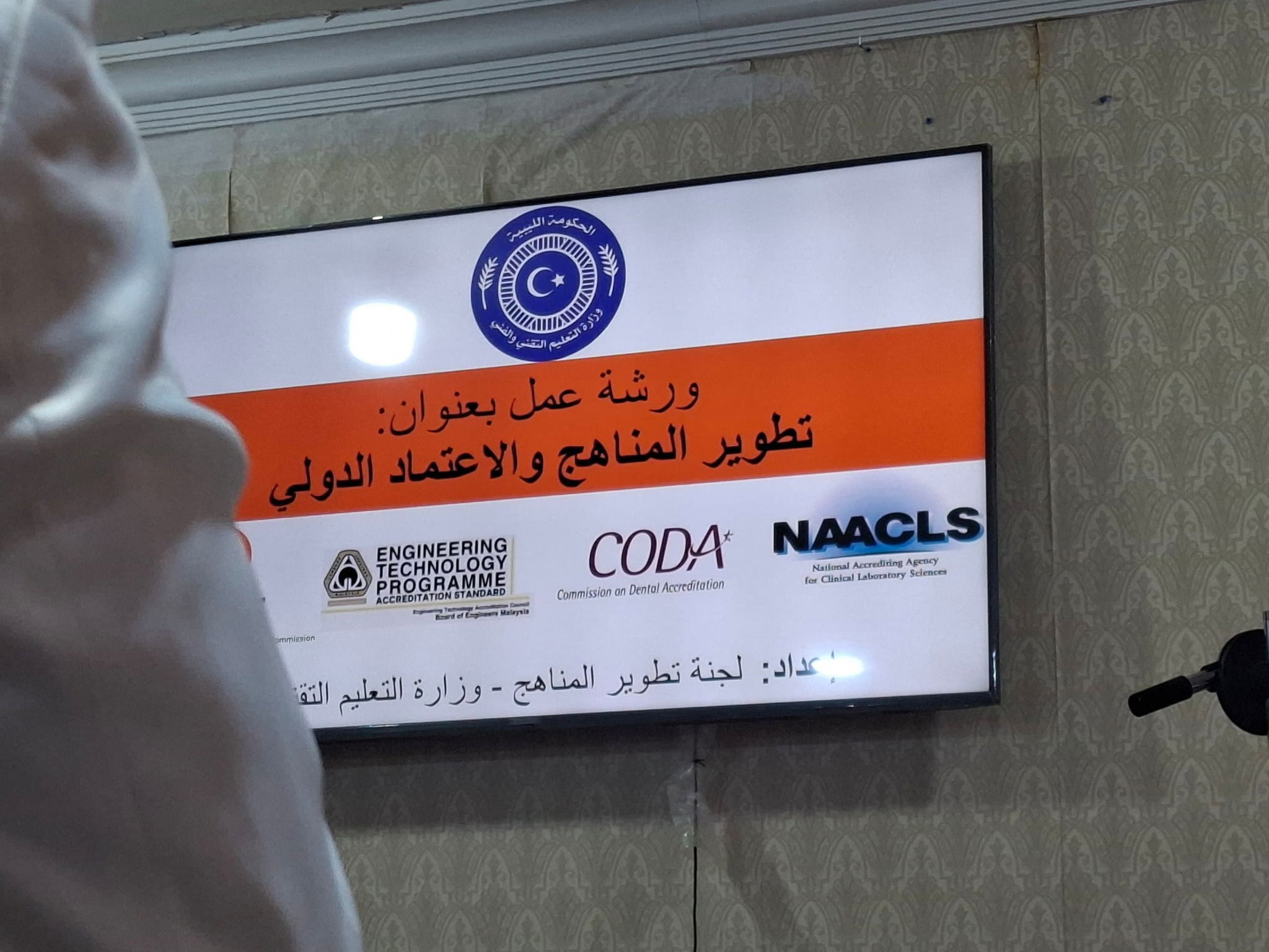 اليوم الأحد 07 سبتمبر 2025م تم تنفيذ فعاليات ورشة العمل بعنوان: تطوير المناهج والاعتماد الدولي، التي نظمتها وزارة التعليم التقني والفني بمدرج كلية العلوم والتقنية – سبها.